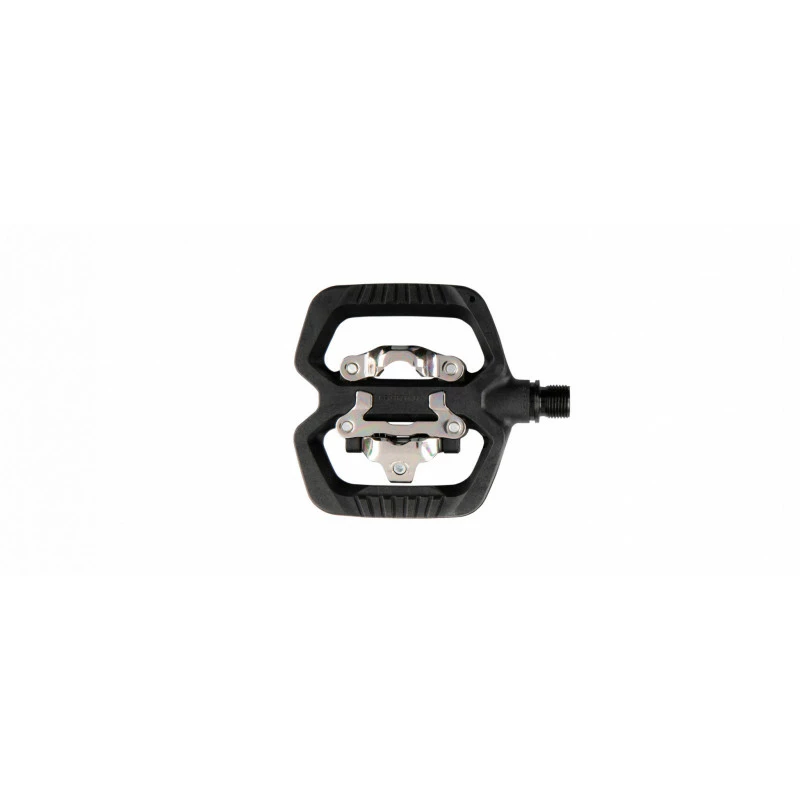 Simple mais terriblement efficace. Dotées d’une face plate et d’une face automatique qui repose sur un mécanisme au standard micro-cale, les pédales GEO TREKKING sont compatible avec des cales SPD. Leur polyvalence leur permet d’affronter toutes les situations et toutes les conditions pour vous apporter une liberté d’esprit incomparable. Trois designs différents ont été développés sur la partie plate des pédales de la gamme, cette version possède un corps en composite évidé et de légers crampons moulés pour répondre à un large champ de pratiques.